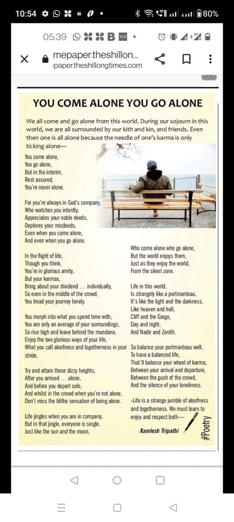Enjoy my poem published in Shillong Times on 6/8/23