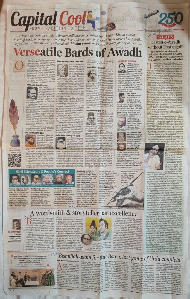 “Lucknow has been the cradle of literary brilliance for centuries. From Urdu’s ‘Khuda-e-Sukhan’ Mir Taqi Mir to revolutionary voices like Hasrat Mohani and progressive Hindi writers like Amritlal Nagar, the city remains poetry’s eternal hub. Mohita Tewari revisits the literary journey of the city …”