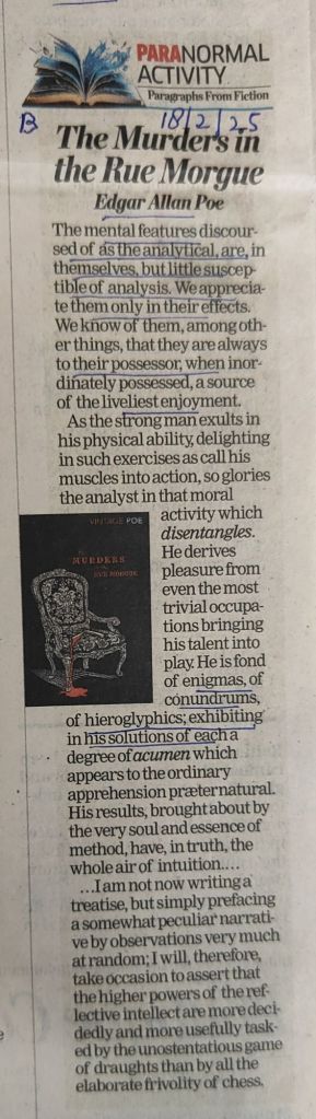 The Murders in the Rue Morgue … Edgar Allan Poe (Economic Times 18.2.25)