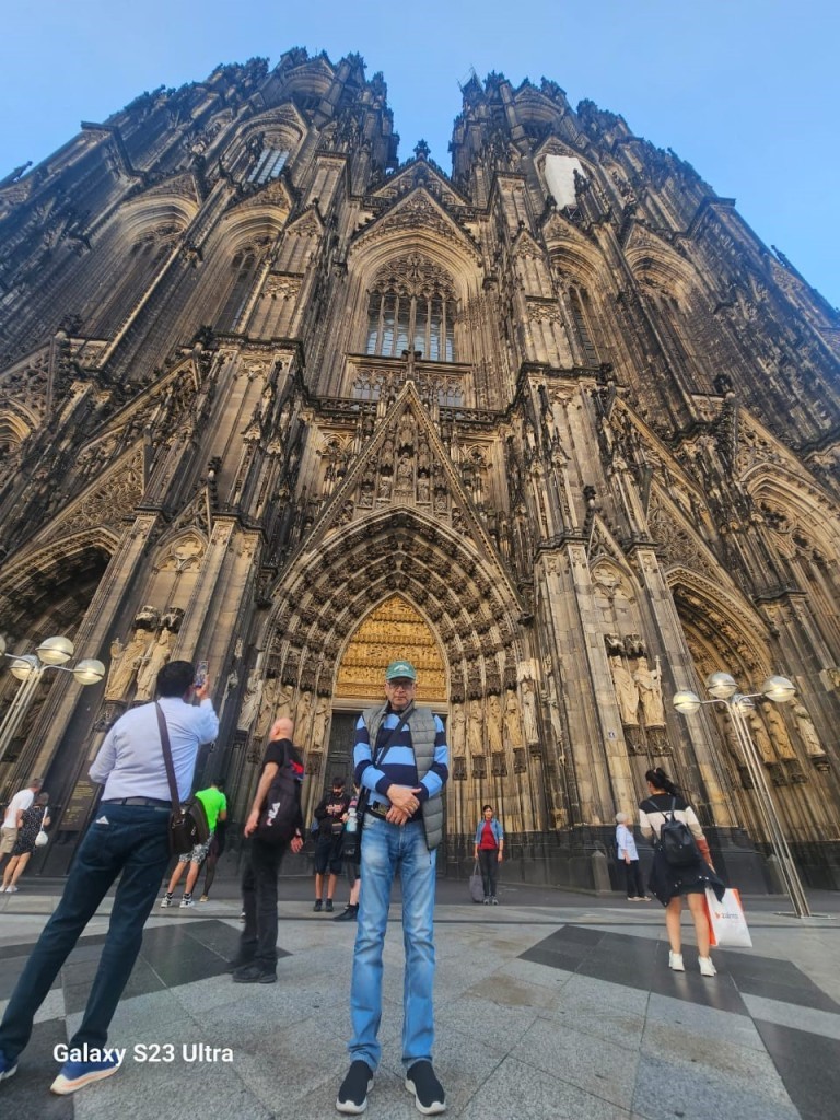 In the afternoon, we set off for Germany. Our destination was Cologne. We planned to visit the renowned Cologne Cathedral after dinner at an Indian restaurant called Rangoli. Sunset in Europe is quite late in August, so we could go sightseeing even after dinner. Since it was the holiday season in Europe, there wasn’t much traffic either. We reached the restaurant by seven, after a four-hour drive. After dinner, we took a leisurely walk to reach the Cologne Cathedral.
