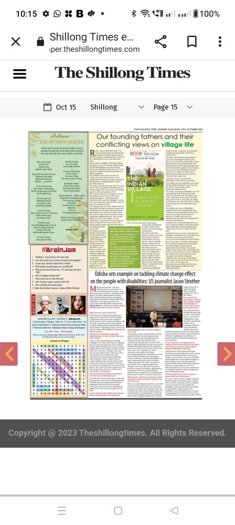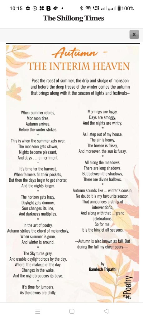 This poem was published on 15th October 2023 in the Shillong Times.