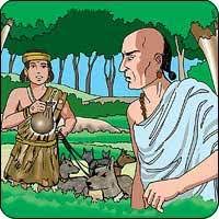 The war began. King Chetaka was a devout follower of Lord Mahavira and had a vow, to not shoot, more than one arrow per day in a war. And, it was known to all, that Chetaka’s aim was perfect and his arrows were infallible. His first arrow killed one Kalakumara, commander of Ajatashatru. On the consecutive nine days the rest of the nine Kalakumaras were killed by Chetaka.
