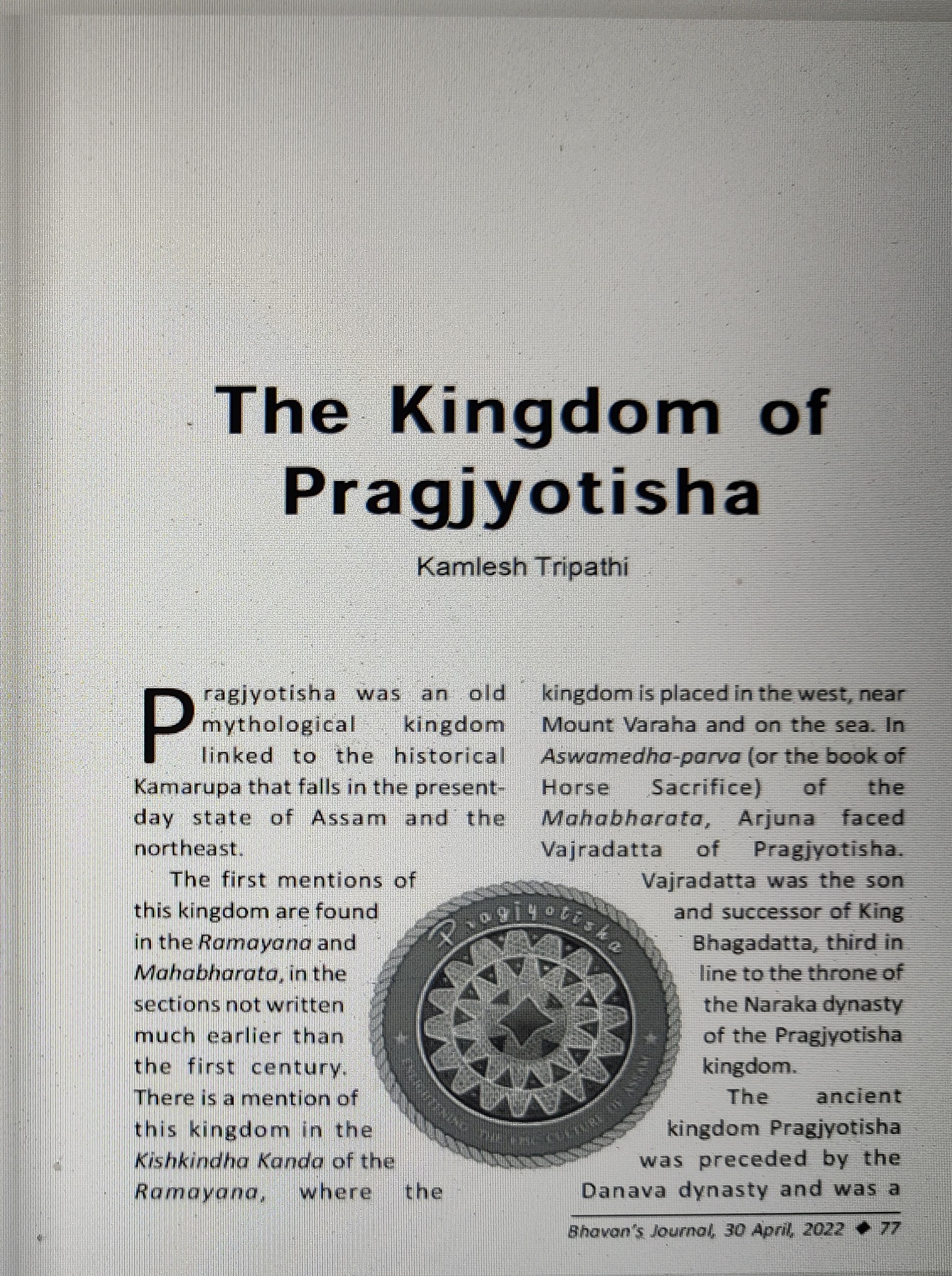 Short stories, Book reviews and Articles published in Bhavan’s Journal: 1. Reality and Perception, 15.10.19; 2. Sending the Wrong Message, 31.5.20; 3. Eagle versus Scholars June, 15 & 20 2020; 4. Indica, 15.8.20; 5. The Story of King Chitraketu, August 31 2020; 6. Breaking Through the Chakravyuh, September 30 2020. 7. The Questioning Spouse, October 31, 2020; 8. Happy Days, November 15, 2020; 9. The Karma Cycle of Paddy and Wheat, December 15, 2020; 10. Power Vs Influence, January 31, 2021; 11. Three Refugees, March 15, 2021; 12. Rise and Fall of Ajatashatru, March 31, 2021; 13. Reformed Ruler, May 15, 2021; 14. A Lasting Name, May 31, 2021; 15. Are Animals Better Teachers?, June 16, 2021; 16. Book Review: The Gram Swaraj, 1.7.21; 17. Right Age for Achievements, 15.7.21; 18. Big Things Have Small Beginnings, 15.8.21; 19. Where is Gangaridai?, 15.9.21; 20. Confront the Donkey Within You 30.9.21; 21. Know Your Strengths 15.10.21; 22. Poverty 15.11.21; 23. Top View 30.11.21; 24. The Bansuriwala 15.1.22; 25. Sale of Alaska 15.2.22; 26. The Dimasa Kingdom 28.2.22; 27. Buried Treasure 15.4.22; 28. The Kingdom of Pragjyotisha 30.4.22; 29. Who is more useful? 15.5.22; 30. The White Swan from Lake Mansarovar 30.6.22; 31. Bhool Bhulayya 15.9.22; 32. Good Karma 30.9.22; 33. Good name vs Bad Name 15.10.22; Uttarapath—The Grand Trunk Road 1.12.22;